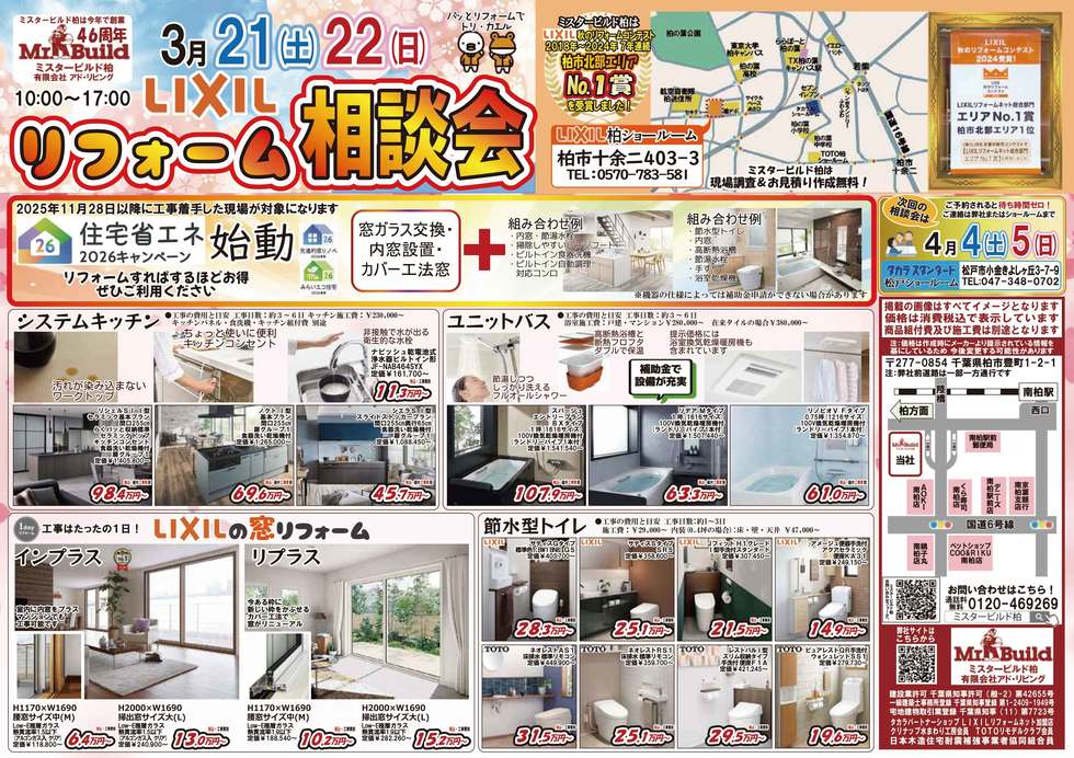 3/21・22(土・日)LIXIL柏ショールームにてリフォーム相談会を開催します。